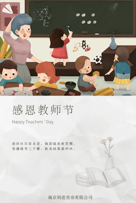 今天是教師節,雖已離校多年,但不論在哪個工作崗位,都想用自己的方式表達對老師的尊敬與懷念,特此奉上南京科進實業有限公司全體員工的祝福。