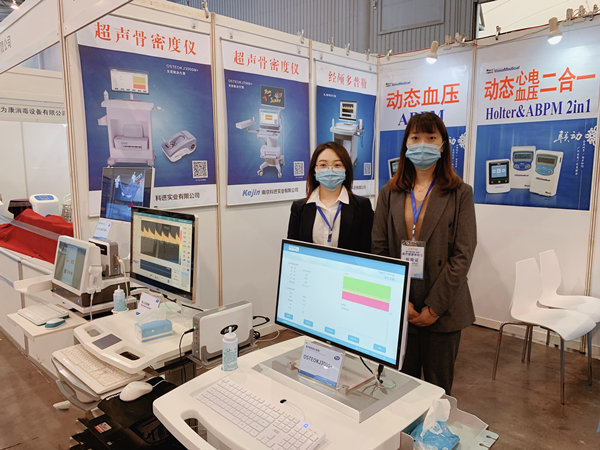 南京科進(jìn)展位已準(zhǔn)備就緒。現(xiàn)場(chǎng)超聲骨密度儀、超聲經(jīng)顱多普勒血流分析儀已調(diào)試完畢,銷售人員飽含熱情,準(zhǔn)備接待參觀者的咨詢!